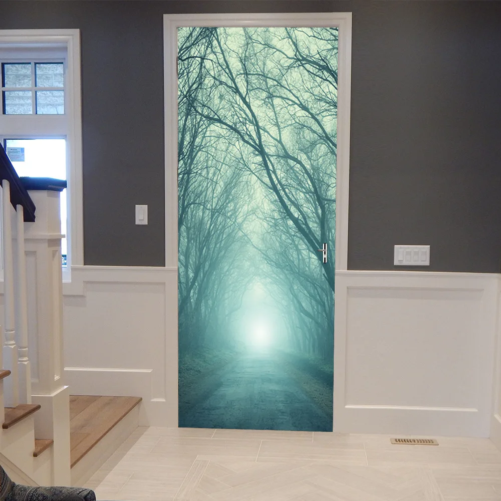 3d Forest Pattern Wall Door Stickers Self-adhesive Door Renovation Living Room Bedroom Home Decor D
