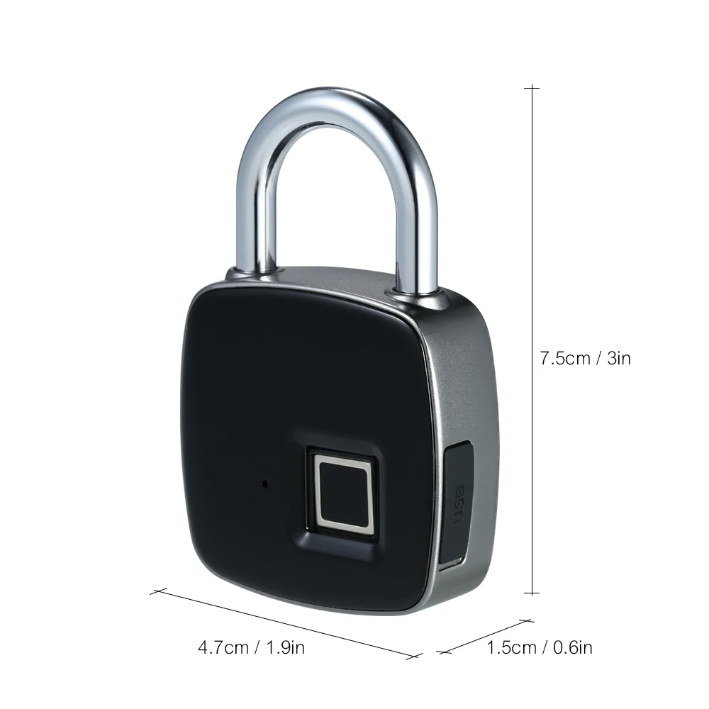 USB Rechargeable Smart Keyless Fingerprint Lock IP65 Waterproof Anti-Theft Security Padlock Door Lu
